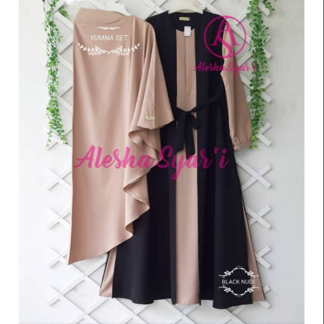 Gamis syari yumna set setelan muslim wanita plus kerudung terbaru.