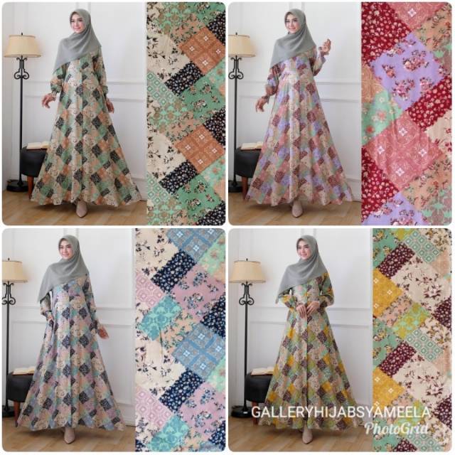 Baju gamis flowy motif bunga.