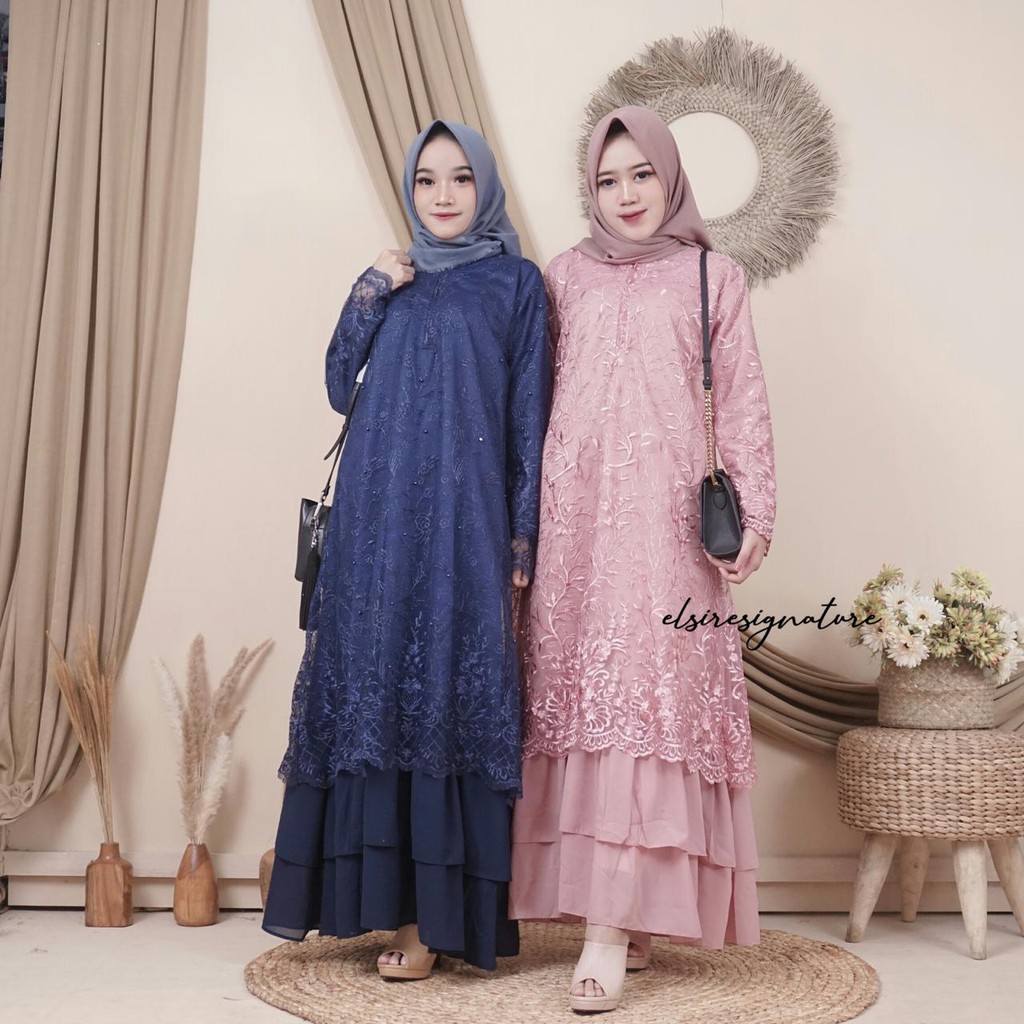 29+ Model Gamis Brokat. Model baju gamis brokat simple elegan buat pesta kondangan pernikahan. Pada bagian pinggang terdapat hiasan bunga yang membuat gamis ini tampak.